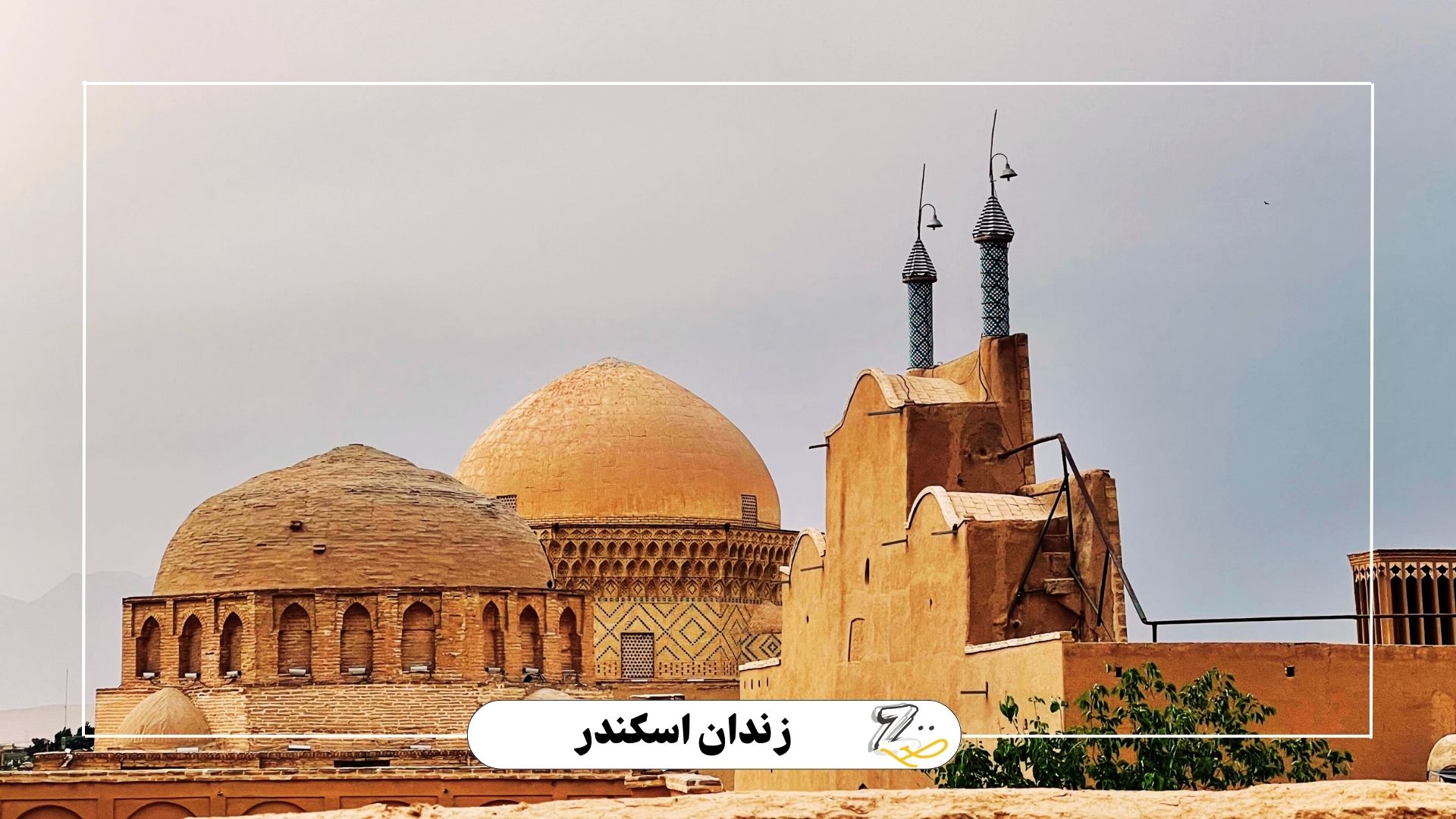 بنای فعلی در اصل مدرسه ضیائیه است که در دوره ایلخانی (قرن هفتم هجری) توسط سید ضیاءالدین حسین رضی و پس از او پسرانش ساخته شد و تا چند دهه پیش به عنوان مدرسه علوم دینی مورد استفاده بود.نام “زندان اسکندر” ریشه در افسانهها دارد؛ بر اساس روایات محلی، گمان میرود در گذشته مکانی نظامی یا حتی زندان در این محل وجود داشته، اما هیج سند تاریخی معتبری مبنی بر ساخت زندان توسط اسکندر مقدونی یا استفاده از این بنا به عنوان زندان وجود ندارد.شاعرانی چون حافظ از واژه “زندان اسکندر” به صورت استعاری استفاده کردهاند و در دوره قاجار این نام به اشتباه بر این بنا نهاده شد.هسته قدیمی بنا (گنبدخانه ۱۸ متری با تزئینات گچی و طلایی) از آثار دوره سلجوقی یا ایلخانی است و احتمالاً پیش از تبدیل به مدرسه، کاربری دیگری داشته، اما مدرک قطعی درباره زندان بودن آن در دست نیست.یکی از قدیمیترین مدارس علوم دینی ایران. تغییر کاربری از احتمالاً یک بنای نظامی یا عمومی به مدرسه و سپس به جاذبه گردشگری و کافه. فضای دلنشین و تاریخی برای گردشگران، با غرفههای صنایع دستی و کافه سنتی در حیاط.زندان اسکندر یزد در واقع مدرسهای تاریخی است و نام “زندان” بیشتر جنبه افسانهای و ادبی دارد. این بنا نمونهای منحصر به فرد از معماری اسلامی دوران ایلخانی و مکانی ایدهآل برای گردشگران علاقهمند به تاریخ و فرهنگ ایران است.