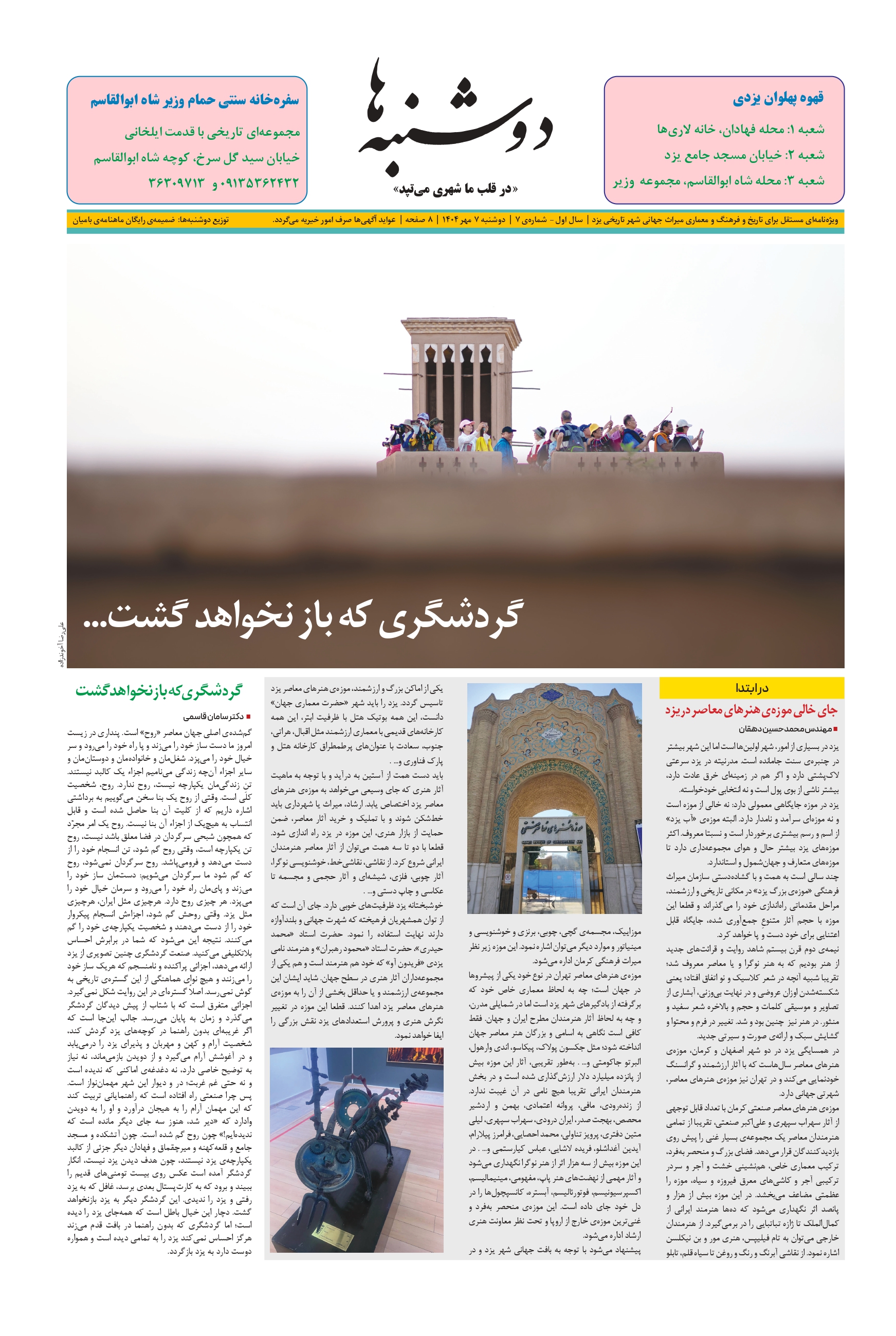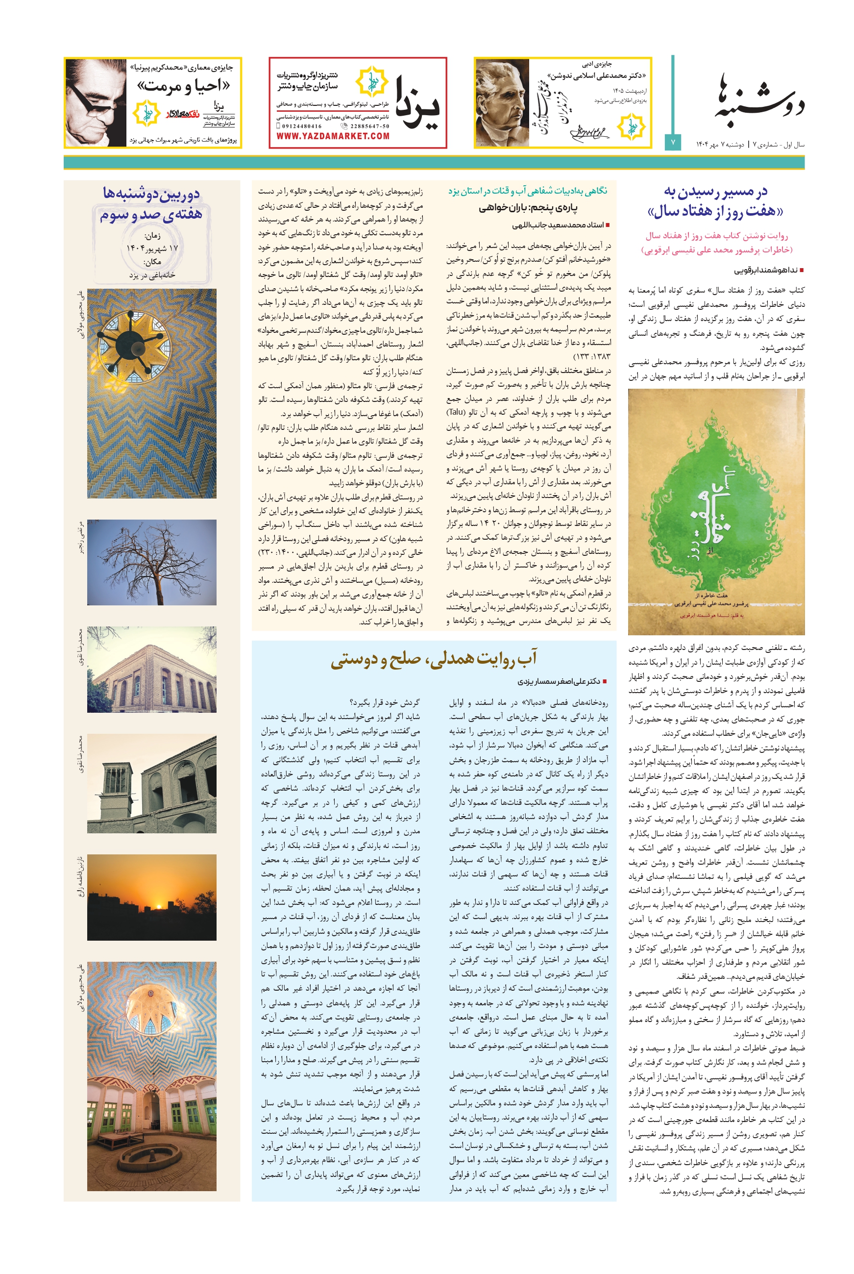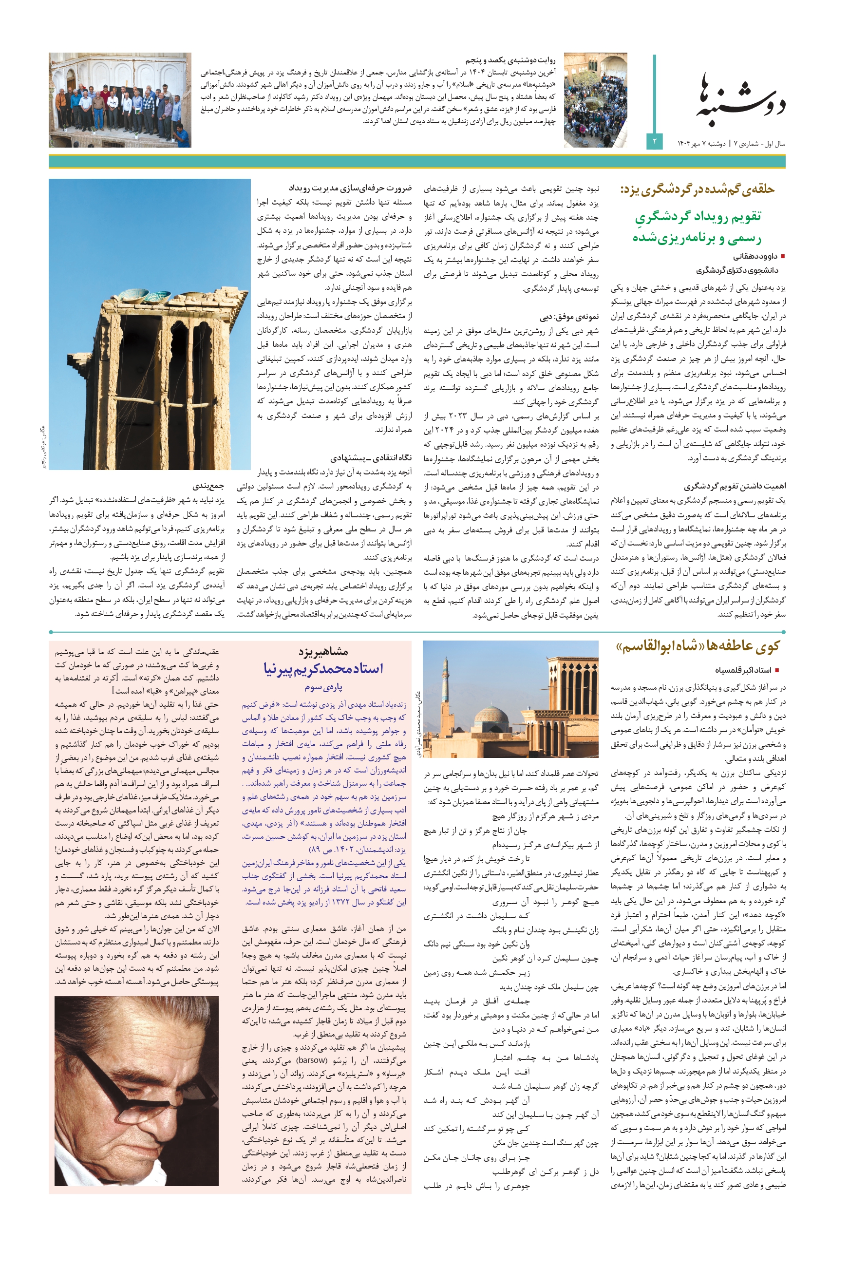 ویژهنامهای مستقل برای تاریخ و فرهنگ و معماری میراث جهانی شهر تاریخی یزد | سال اول – شمارهی ۶ | دوشنبه ۲۴ شهریور ۱۴۰۴ | صفحه ۸