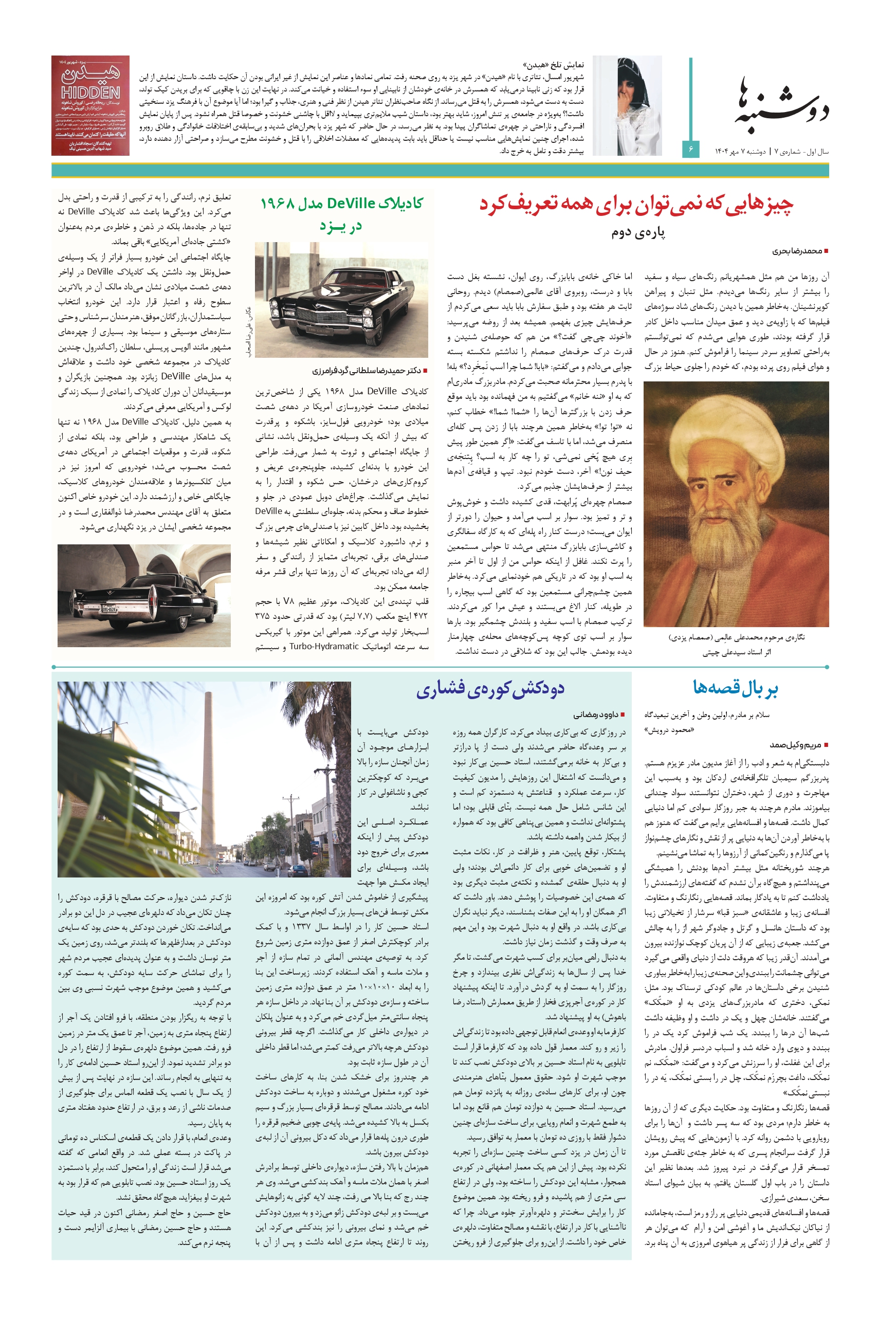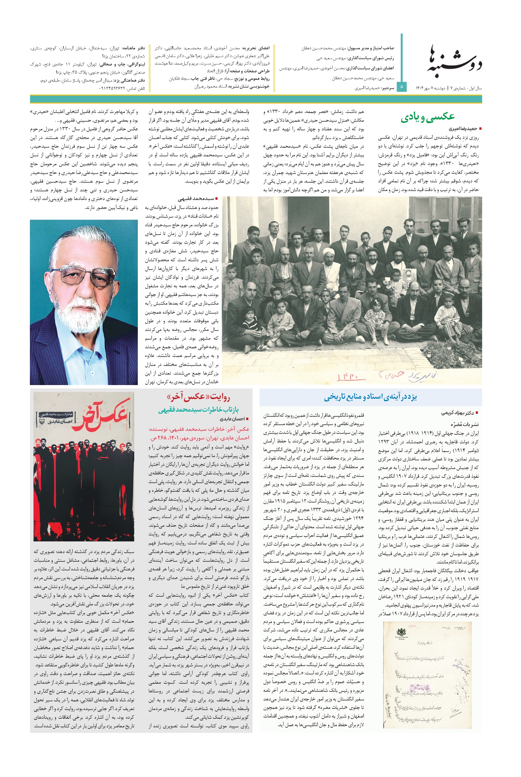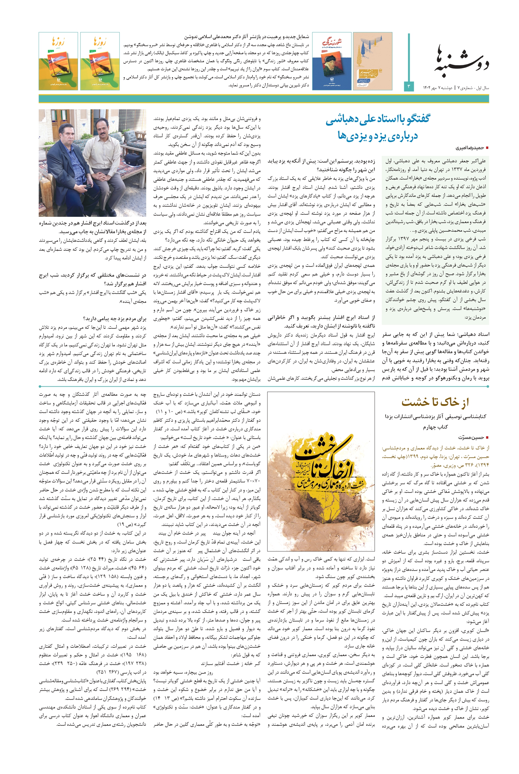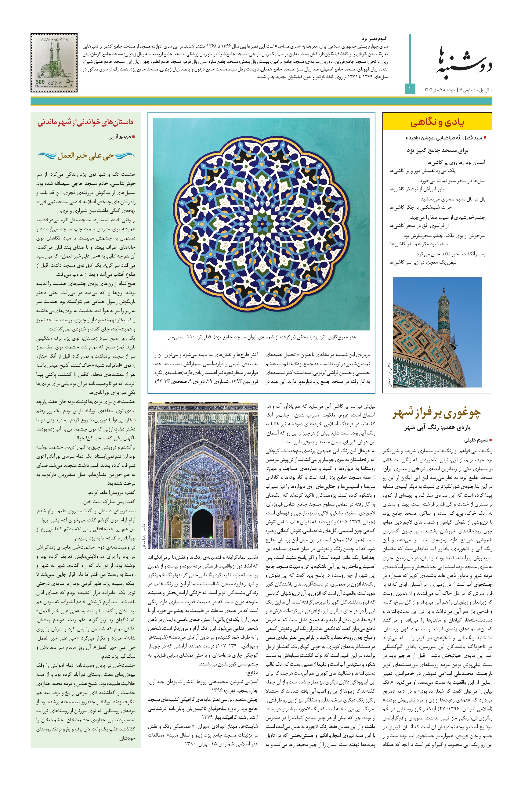 ویژهنامهای مستقل برای تاریخ و فرهنگ و معماری میراث جهانی شهر تاریخی یزد | سال اول – شمارهی ۶ | دوشنبه ۲۴ شهریور ۱۴۰۴ | صفحه ۸