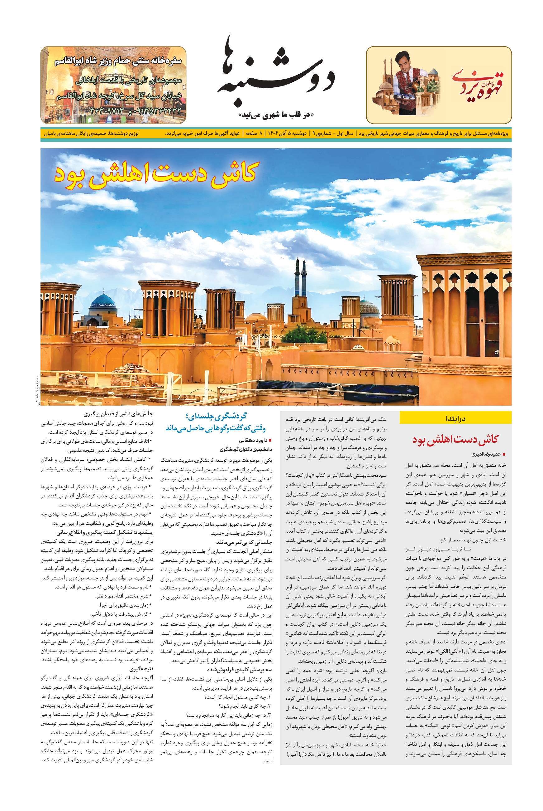 در یزد ما "مرمت" و به طور کلی مواجهه ی با میراث فرهنگی این حکایت را پیدا کرده است. برخی چون ّ متخصص هستند، توهم اهلیت پیدا کرده اند. برای درمان بر سر بالین بیمار حاضر شده اند اما چشم بیمار، دلشان را برده است و بر سر تصاحبش برآمده اند! میهمان هستند؛ اما جای صاحب خانه را گرفته اند. یادشان رفته یا نمیخواهند به یاد آورند که وقتی خانه، دست اهلش نباشد، آن خانه دیگر خانه نیست، آن محله هم دیگر محله نیست، یزد هم دیگر یزد نیست.
